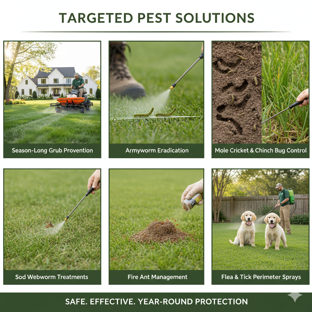 Mole Cricket & Chinch Bug Control: Targeted solutions for the pests that thrive in Bermuda and Zoysia grass.
